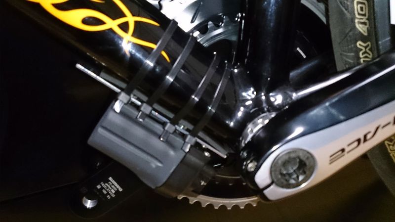 そこで、Bikeguyのどこでもケージホルダーを使ってバッテリーをダウンチューブ下につける計画です。