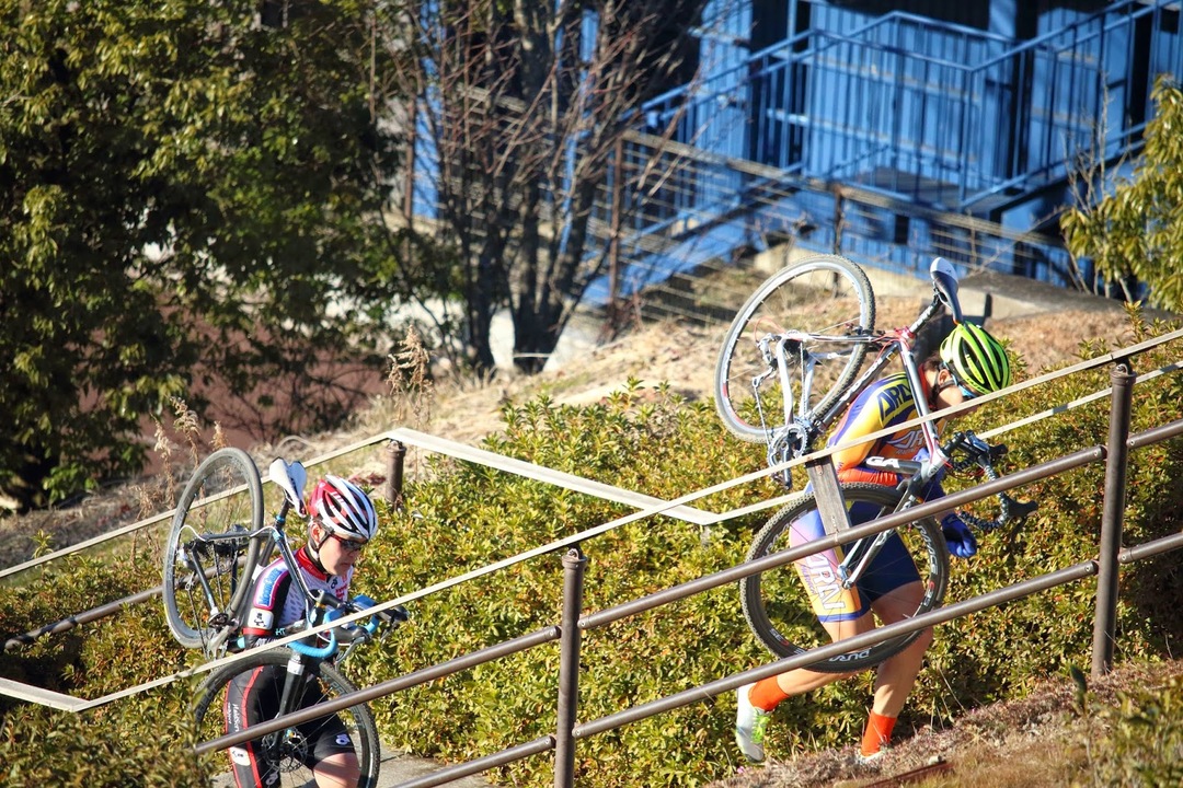 平坦と激坂で脚と心肺を使わせた直後に現れる70段の階段。自転車だけ乗ってるとどうしようもないレイアウトである。