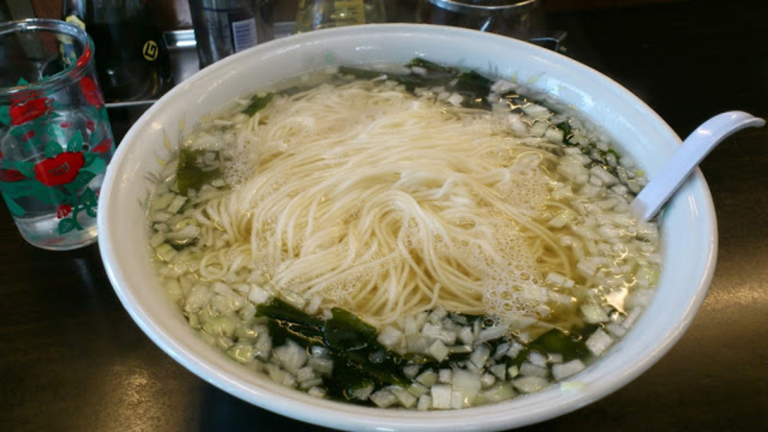 酢と出汁の効いたシンプルなスープに細麺を投入、刻んだ玉ねぎを入れたものが最もシンプルなタンメン。価格も並盛りで 400 円以下と非常にリーズナブル。