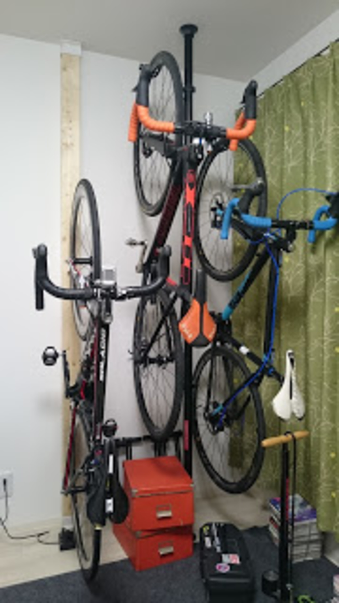 狭くて賃貸でも大丈夫!室内にロードバイクを壁掛け保管する方法
