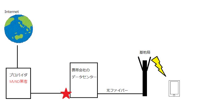 MVNO の場合、★ 部分の回線速度が通常の契約に比べ低速となります。