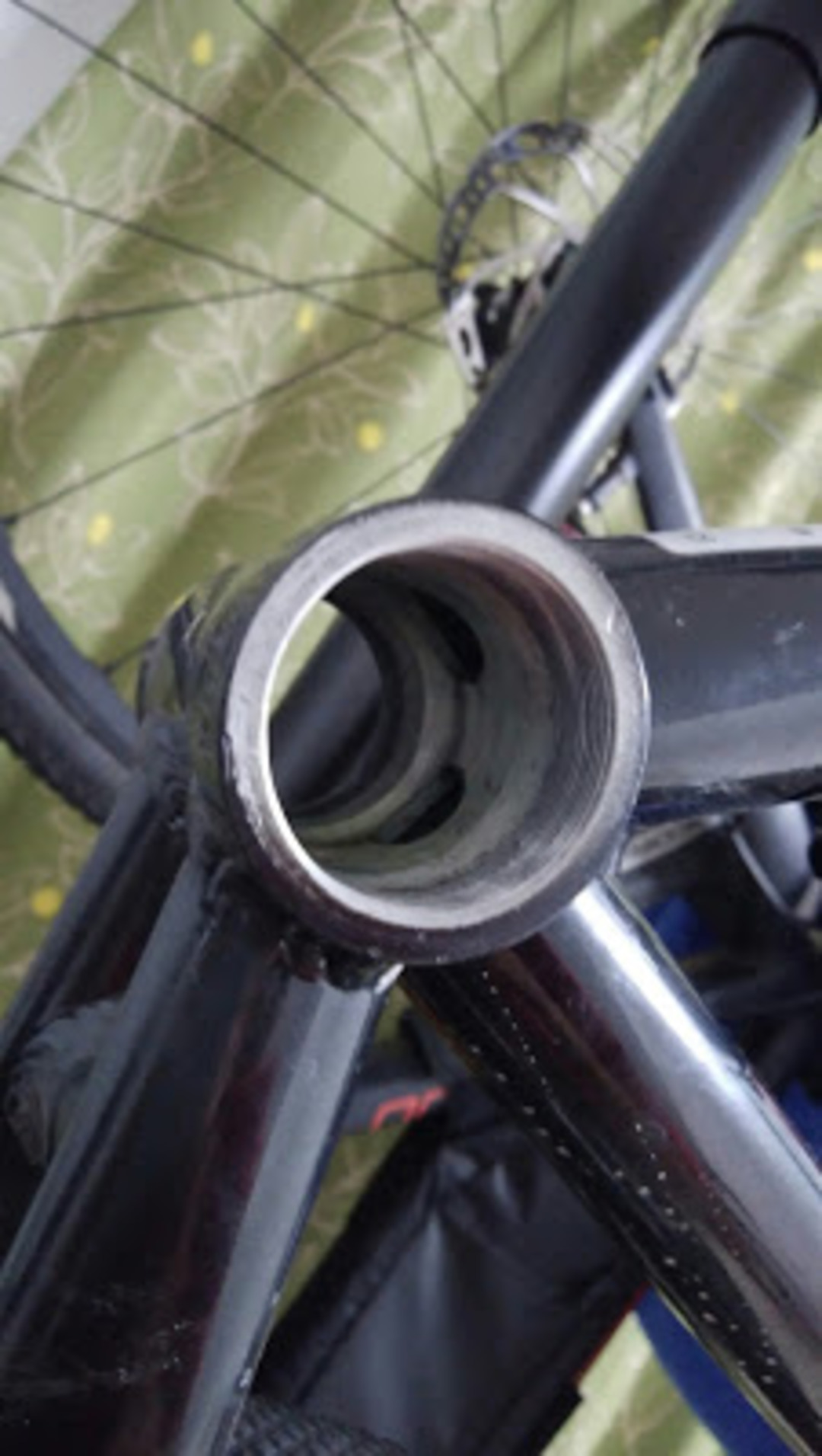まずは手持ちの CX をバラして内装のための穴をチェックする。 クポイントは「ダウンチューブ →BB」「BB→ 右チェーンステー」の穴。