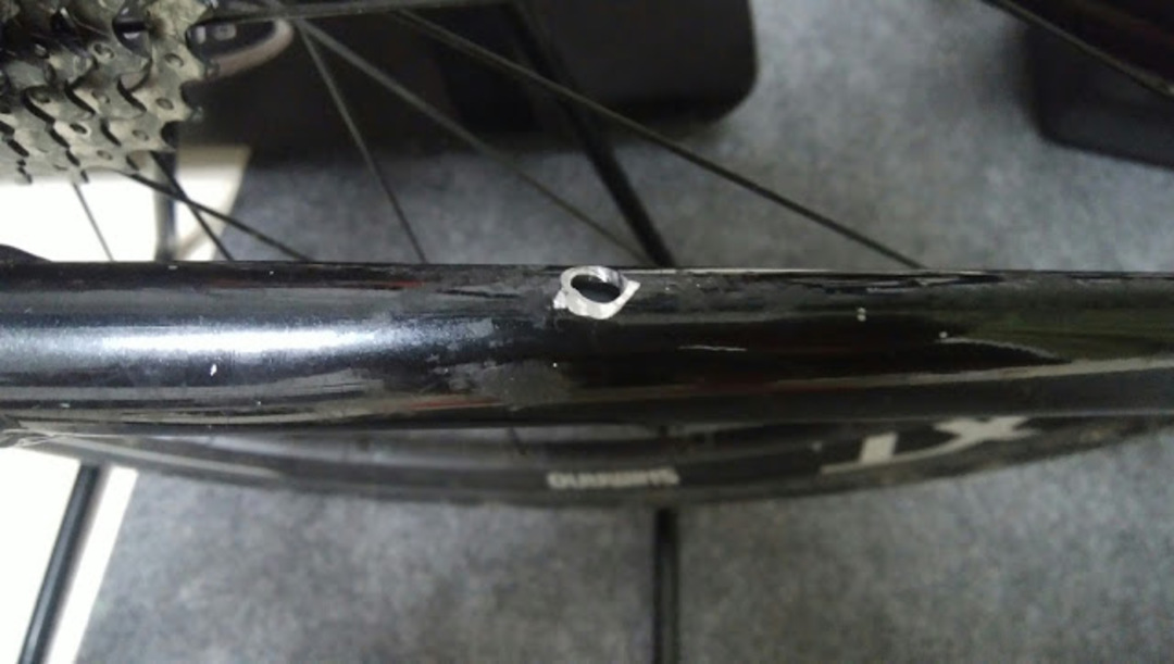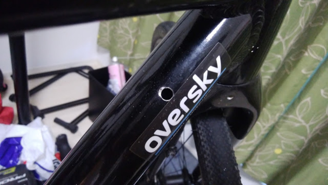 唯一チェーンステーだけ、末端に穴を開けるか上部に穴を開けるか迷ったが、末端に穴を開けた際グロメットを嵌められる自信がなかったので上部を選択した。