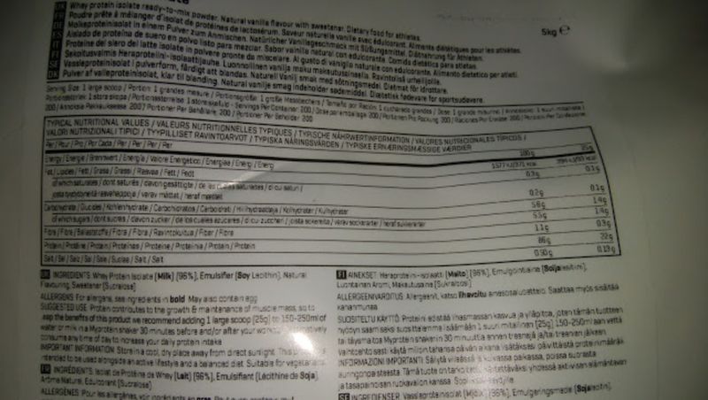 サイト上での100gあたりタンパク質は82gだったが、フレーバーごとに ±10%変化があるとの表記。重要なところなので全部書いて欲しかったが…
