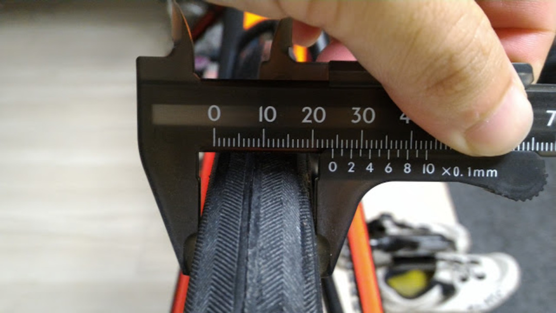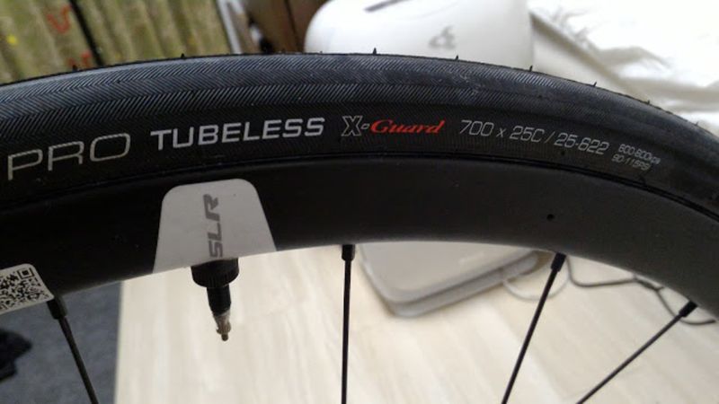 こいつはモデルチェンジ前25cなのに27mm近く膨らむというタイヤだったが、新型はそうでもないということで25cをチョイスした。おそらくTCRのクリアランスは28cタイヤが限界だと思うのでやや安全策。