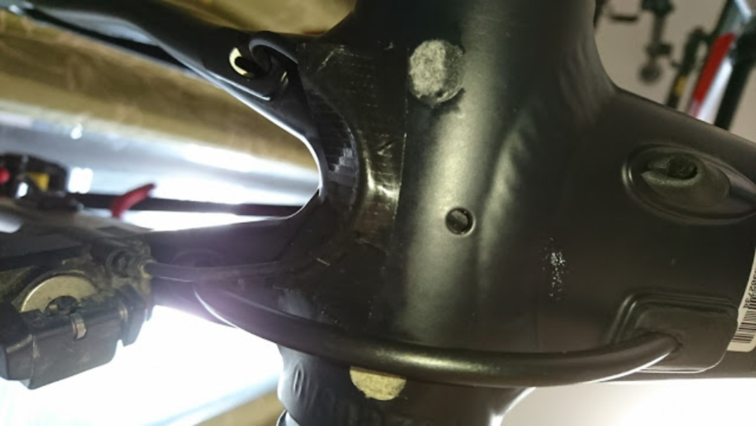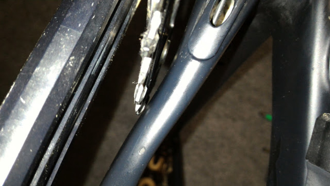 因みに反対側のDi2バッテリーとクランクアームについてもクリアランスギリギリである。これはどうしようもないので放置、余り好きではないが、干渉への安心感という意味では内装バッテリーの方がおすすめできる。