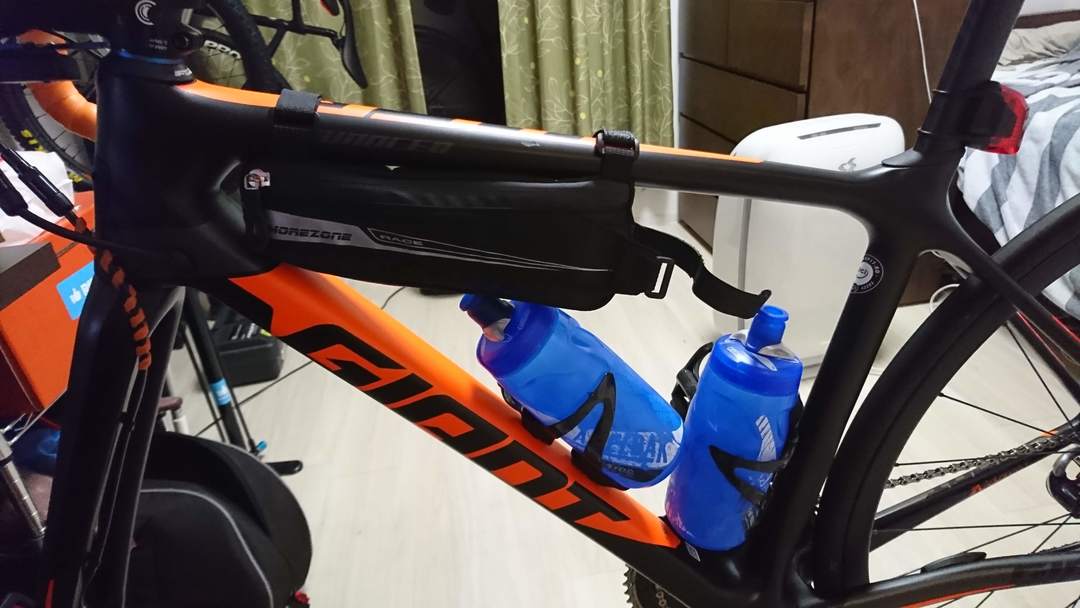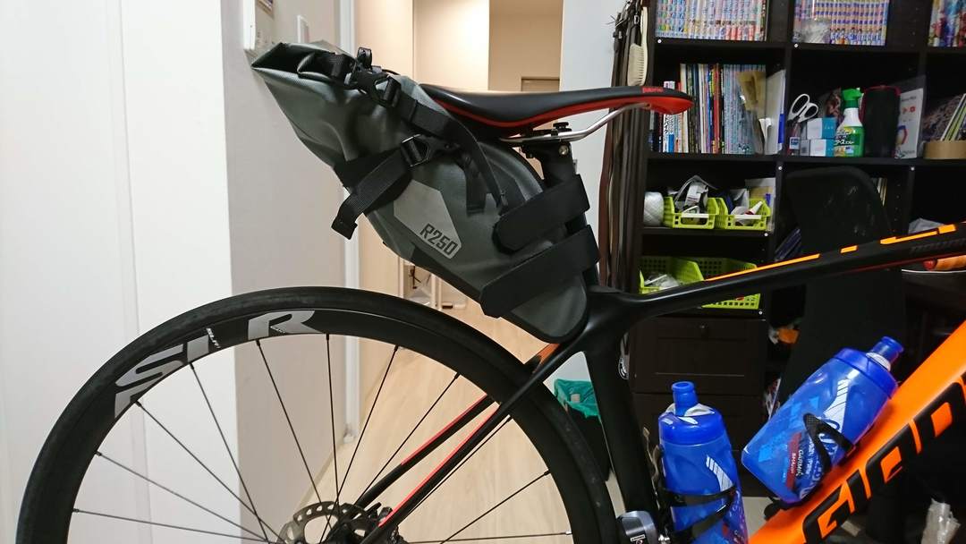 今回は 1 泊行程を組んだため、荷物がある程度必要になる。TCR ADVANCED PRO DISC には当然ダボ穴がないので、いわゆるバイクパッキングの装備をすることになる。