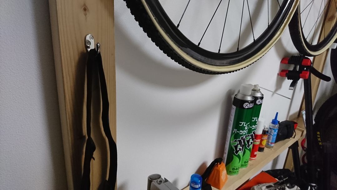 あとは、ホイールフックはカーボンホイールでも良いようにラバー付きのものを選んだ程度。場所が余ったのでフックを使って心拍ベルトも飾っておいた。
