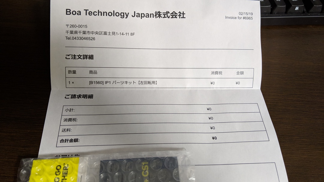 ただ、公式のリペアパーツはBOAから直接買うよりお高い。予備で買うなら1点1500円の 公式ショップ から買うべきだろう。IP1でなければもっと安い。