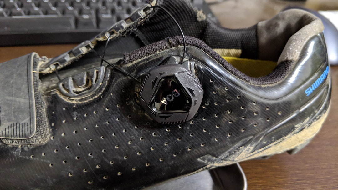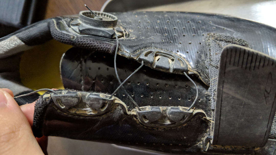 きっかけは前橋CXで太い枝に引っ掛けて左シューズのBOAダイヤルを破壊したこと。