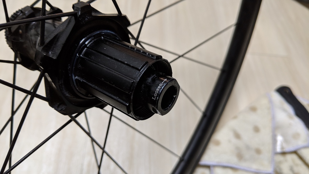 洗ってもすぐに墨汁が滲んでくるひどい状態。シャフトに穴が空いており、ここに細い棒を通せば固定できる。そしてドライブ側は 逆ネジ のキャップとなっているので、六角レンチをノンドライブ側の穴に通してハブレンチでクルクルと回せばすぐに外れた。最初に間違えて順ネジの緩め方をしたせいで六角レンチが曲げてしまい悲しい。