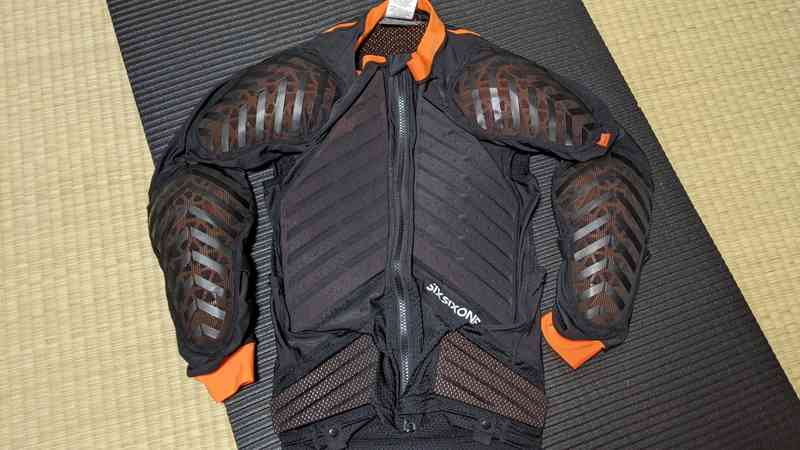 中古で買ったハードタイプのモトクロス製品(SixSixOne 製)は、安全と安心はあったが着用時の不快感が高かったので、結局同じSixSixOne の MTB 用アーマーを買いなおしたという経緯がある。
