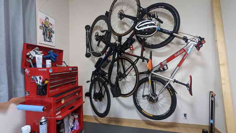 手持ちの4台のうち、1台はローラー上が定位置、MTB・街乗りCX・グラベルロード(ディープリム)が縦置きになるとすると、ZIPP303Sを履いているグラベルロードだけはSteadyRackを利用したい。