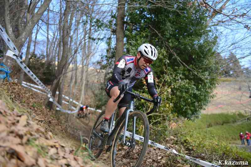 階段で抜きつ抜かれつ、10秒以上のビハインドを背負う場面もあった。後半は体力も回復してグラウンド側の山を乗車で半分登れるようになり、これで一気にタイムを稼ぎ、グラウンドのスラロームでうまく抜け出すことに成功。